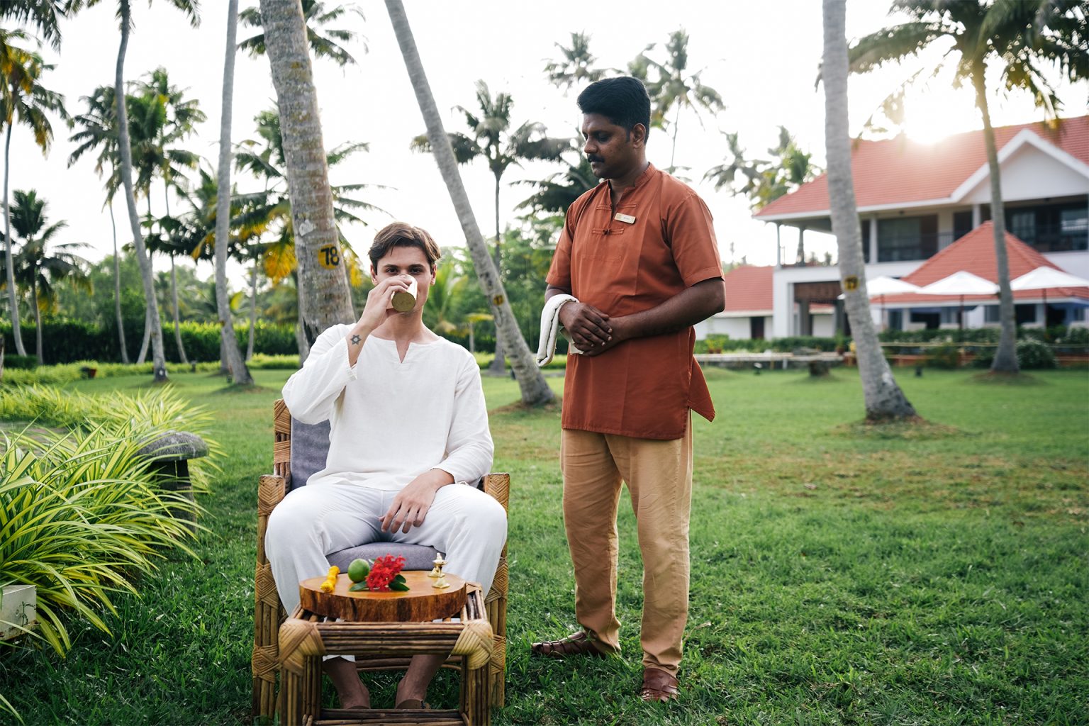 Amal Tamara, a tranquil Ayurvedic retreat set amidst the serene backwaters of Kerala—offering a taste of its lush surroundings, inviting architecture, and wellness therapies.
