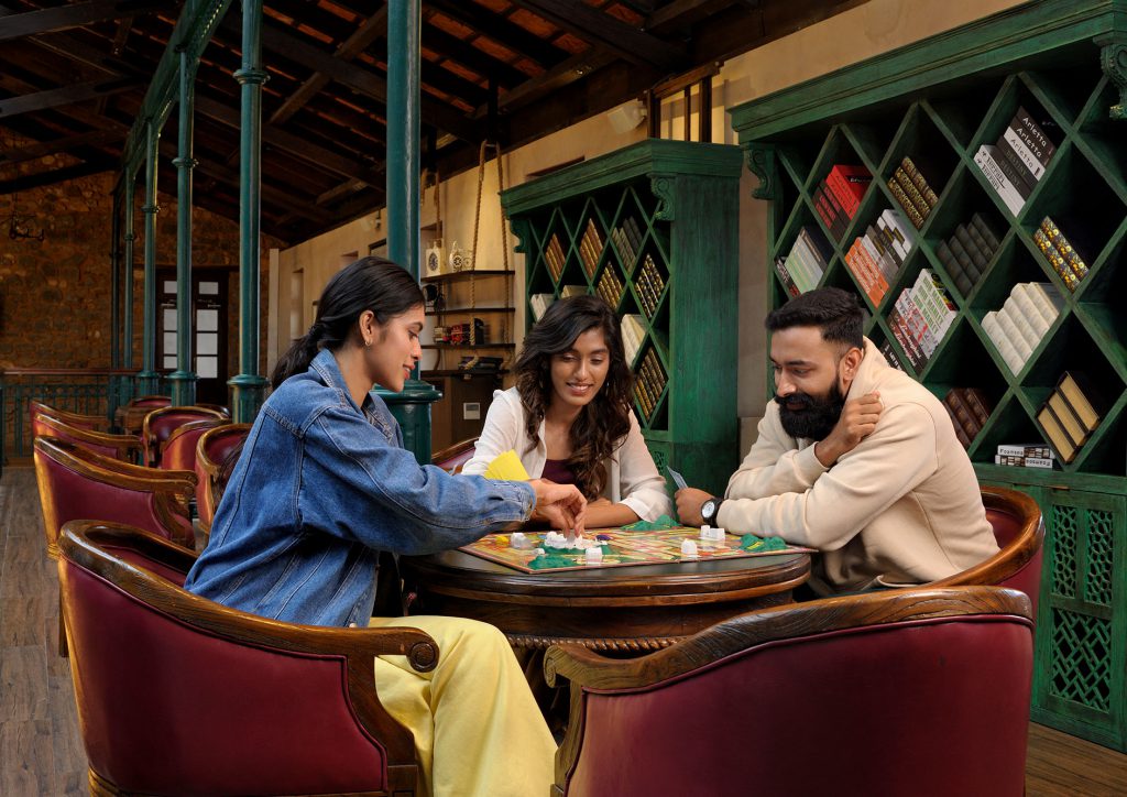 A heated, temperature-controlled swimming pool perched at the property’s highest point, a cozy library with board games and PS-4 (on charge), and a pool table near the lobby.