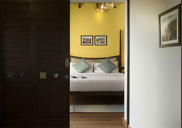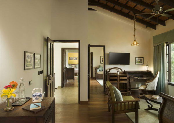 Luxury Suites (~450 sq ft): Colonial-style sitting area, flexible bed options, and an extra diwan-bed.